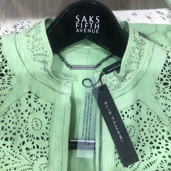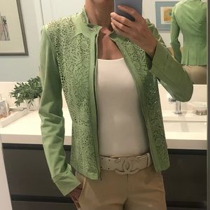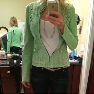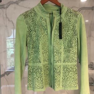 Chic designer jacket with incredible laser cut detail in 100% buttery soft suede. From Saks Fifth Avenue, NWT, $1298.00. Size 38(size 2). *From smoke free, pet free home.