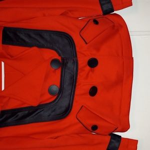 Red designer front button jacket. purchased in Chicago at a boutique store.