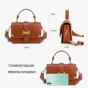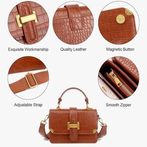 Designer look Croc-Embossed Leather Bag with gold H hardware and crossbody strap