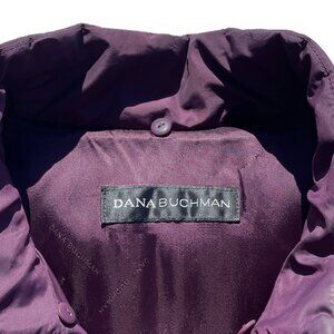 Designer plum puffer jacket coat with detachable genuine fox fur collar small