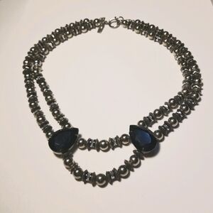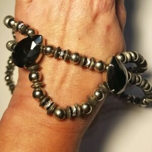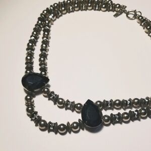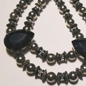 Exquisite Vintage Art Deco style Pauline Rader Silver plated with Black Large Pear shaped Rhinestones and black and clear rondell crystal spacer beads. Measures 18" long and is in Great Vintage condition!