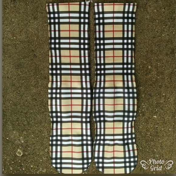 New custom made designer Burberry pattern socks all socks are front and back comment your size when purchasing fast shipping great quality