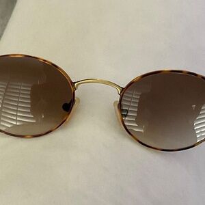 Designer sunglasses gold metal/ tortoise oval gradient light brown lenses italy