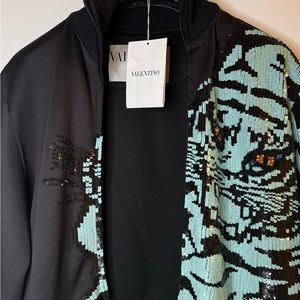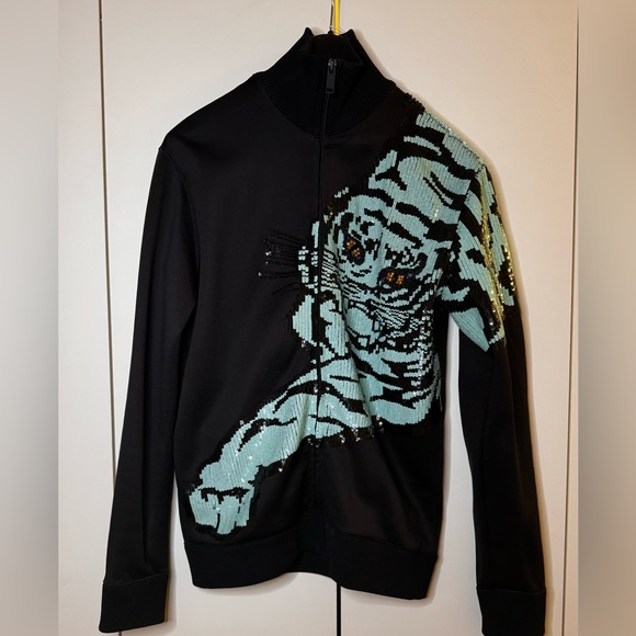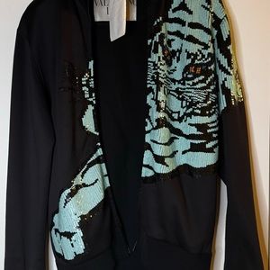 A zip front sweatshirt is elevated to the max with an intricate, sequin tiger appliqué.