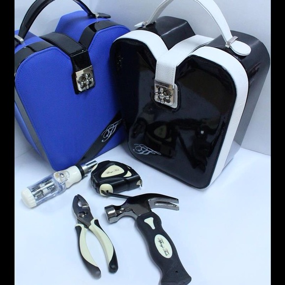 Designer tools in a chic handbag. Comes with tape measure, hammer, pliers, and screwdriver !