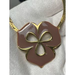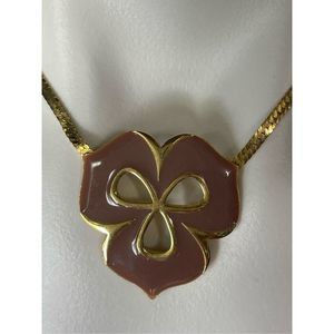 You are looking at a stunning rare design dark tan enamel flower pendant necklace. The chain is herringbone design. Signed GIVENCHY PARIS NEW YORK 1980. In great condition.
