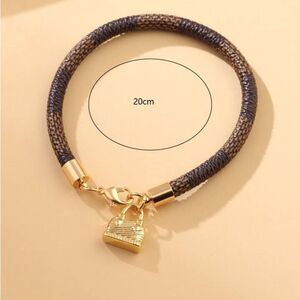 Designer Inspired Brown Checkered Gold Plated Bag Charm Bracelet