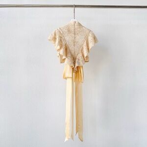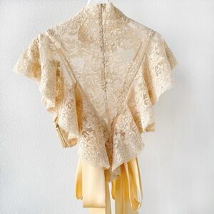 Designer-Style Cream Lace Blouse with Ribbon