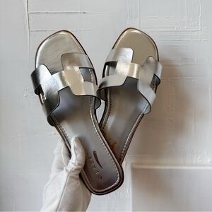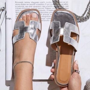Step into luxury with these metallic silver flats—a must-have for any fashion-forward individual looking to add a sparkle of designer flair to their wardrobe.