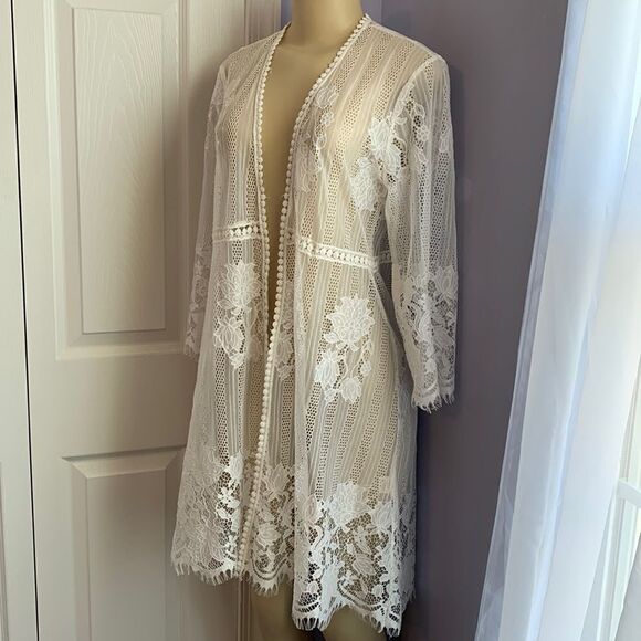 Designer Swimwear Lace Crochet Cover-up Kimono Wrap M white