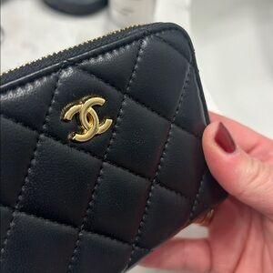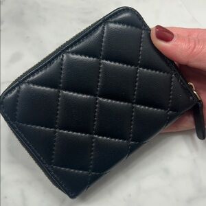 Beautiful mini zip wallet- 100% soft and supple quilted leather! Gold hardware.