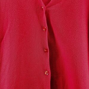 This stylish Designers Original women's sweater comes in size 1X and a bold red. Crafted from 100% cotton, it features a button-down style and long sleeves for a warm, cozy feel.