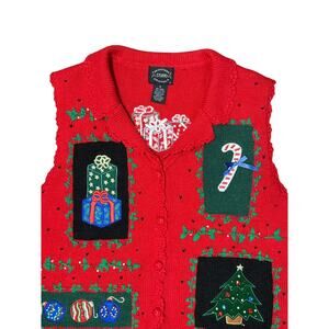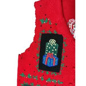 Designers Originals Christmas Sweater Vest Women's M Embroidered Tree Presents