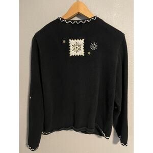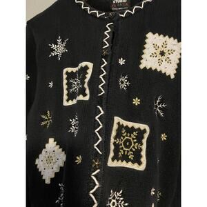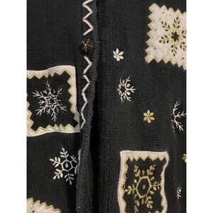 Designers Originals Studio Cardigan Sweater Womens Petite Large Black Snowflake Holiday