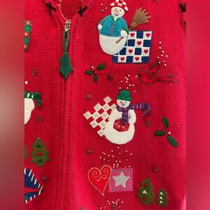 Designers Originals Studio FA LA LA Red Snowman Knit Cardigan Vest