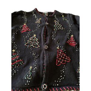 Designers Originals Studio FaLaLa Holiday Cardigan P/M Beaded Sweater Black READ