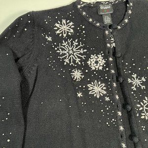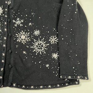 Designers Originals Studio Joy Christmas Snowflake Sweater P/XL Black Button up