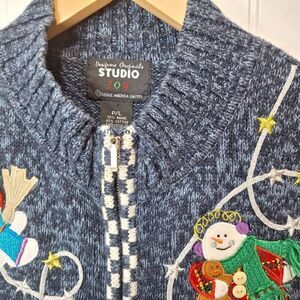 Designers Originals Studio Joy Womens Christmas Vest Size P/L Blue Zip Front VTG