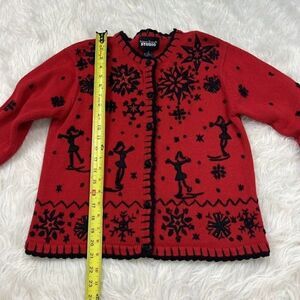 Designers Originals Studio Red & Black Embroidered Christmas Sweater Ice Skater