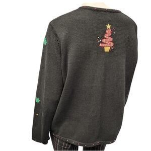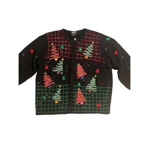 Designers Originals Studio Sweater Womens 2X Black Christmas Tree Ugly Holiday Beaded