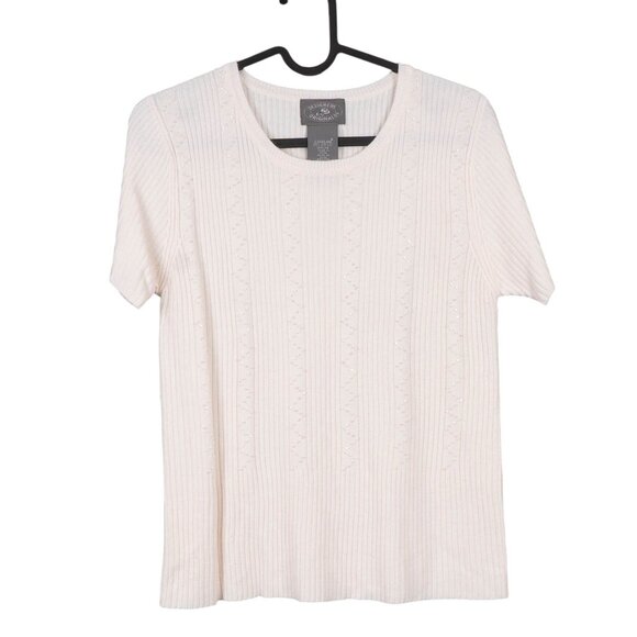 Designers Originals Sweater Shirt Petite S Womens White Ribbed Luxelon Beads