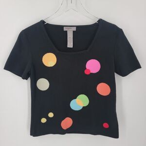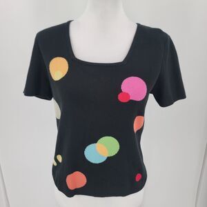 Designers Originals Sweater Womens Petite Medium PM Polka Dot Square Neck Mod