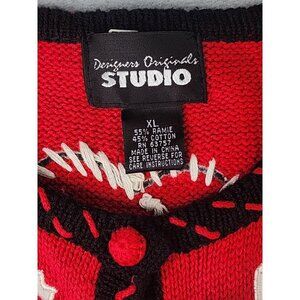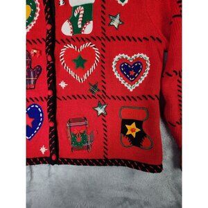 Designers Originals Winter Sweater Womens XL Red Button Up Mittens Stars Teacher