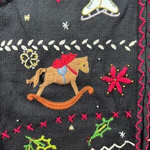 Designers Originals Women Embroidered Christmas Sweater Vest Full Zip XL I188