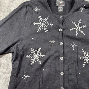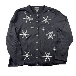 Designers Originals Women Snowflake Sweater Button Front Cardigan Black XL I191