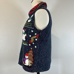 Designers Originals Womens Blue Embroidered Christmas Snowman Sweater Vest Small