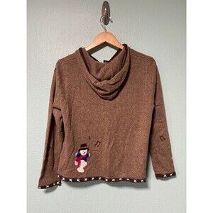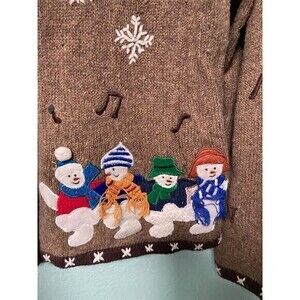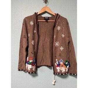 Designers Originals Women's Brown Zip Up Snowman Winter Sweater Small