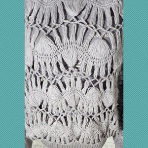 oversized crocheted top with a fitted ribbed hem/waistband