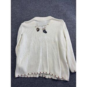 Designers Studio Originals Sweater Womens XL White Animal Print Mittens Holiday Zip