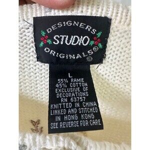Designers Studio Originals Vintage Christmas Holiday Embroidered Beaded Cardigan L
