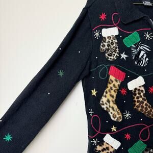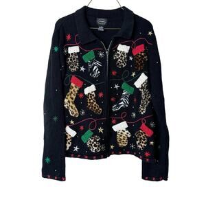 Designers Studio VINTAGE animal fur mitten christmas holiday cardigan MEDIUM