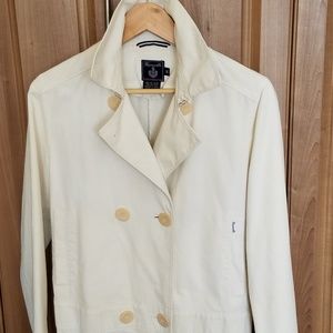 French fashion, made in Italy white coat. Cotton with rayon lining with pockets. Perfect for spring, summer, fall. Barely used. Fits small and medium. Length 34 inch