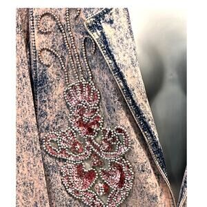 Designs USA Vintage Acid Washed Long Embellished Bejeweled Pink Denim Duster