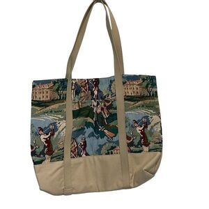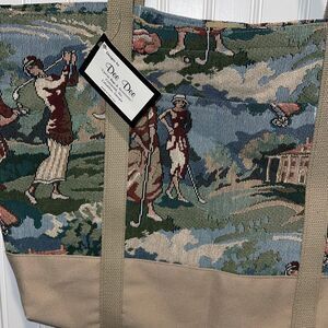 Designs by Dee Dee Womens Playing Golf Print Tapestry Tote Bag Green Small NWT