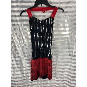 Halter snap at neck sequin and fringe bodysuit Dancewear size MA- Medium Adult