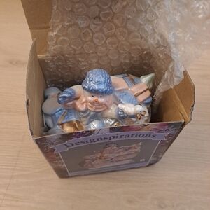 Designspirations Vintage 2002 Glass White Blue Snowman Bird Figurine Dish