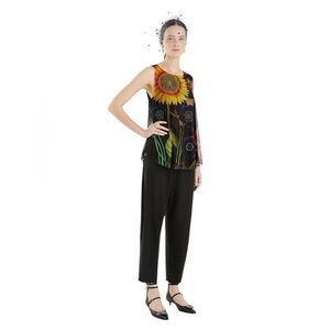 Desigual $150 Mesh Floral Sunflower Sleeveless Top 0013