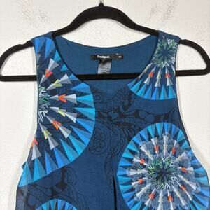Desigual 38/6 US/Small Chiffon Layered Shift Dress Blue Silky Slit Sleeveless