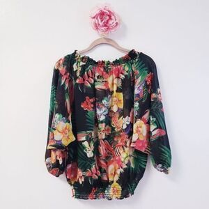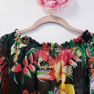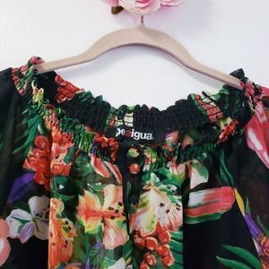 desigual black floral Blouse preowned great condition size small tpptoteD