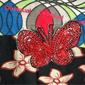 Desigual A Line Dress XS Vintage Y2K Patchwork Sequin Butterfly Plunge V Neck