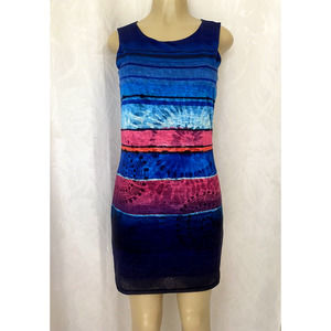 Desigual ADANA Blue Sleeveless Dress Striped Round Neck Pink Keyhole Shi…