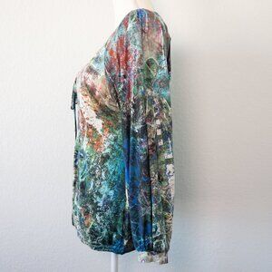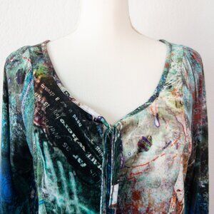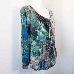 Desigual Abstract Print Long Sleeve Top Large Multicolor Boho Artsy Blouse