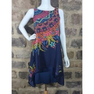 Desigual Adri Blue Floral Chiffon Multilayer Hi-Low Shift Dress Size 36 XS