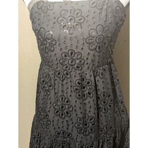 Desigual Black Floral Eyelet Embroidery Sequin Tiered Maxi Dress M Desigual