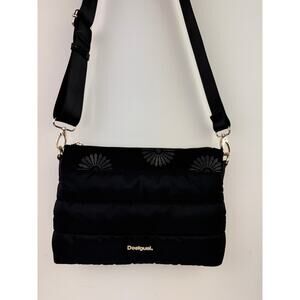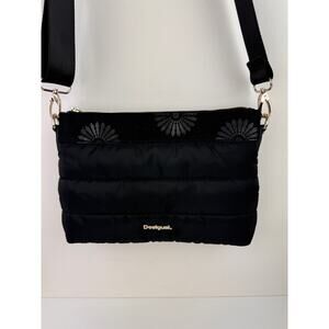 Desigual Black Handbag Floral Magic Durban Negro Pockets Crossbody Puffer Bag