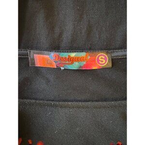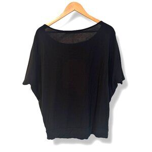 Desigual Black Laser Cut Fucshia Lining Wide Neck Dolman Knit Top Shirt Size S